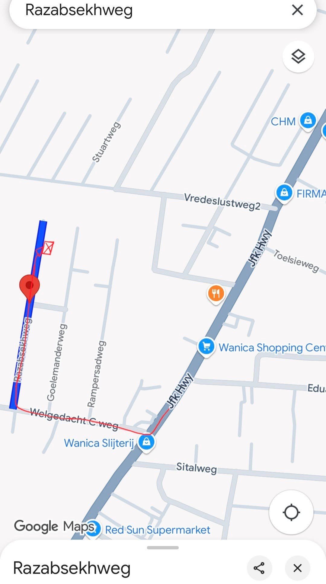 Deze kavel van de Razabsekhweg is via de Welgedacht C weg niet ver de derde zystraat vanuit Pad van Wanica. In de Razabsekhweg is het ongeveer 1KM naar binnen ryden. De Kavel ligt tussen huis nr. 40 en 42. Perceel heeft inrit en is bouwryp.