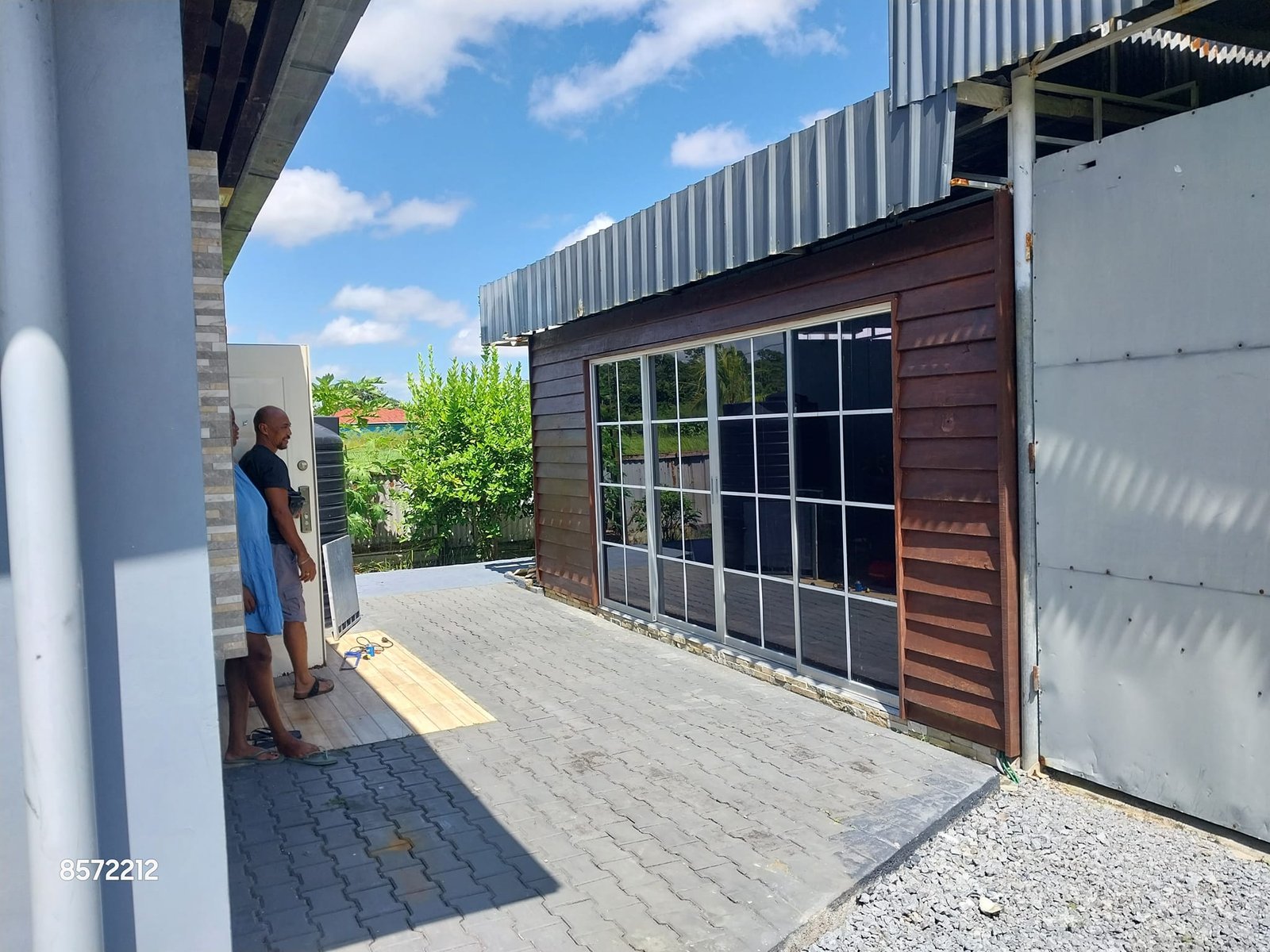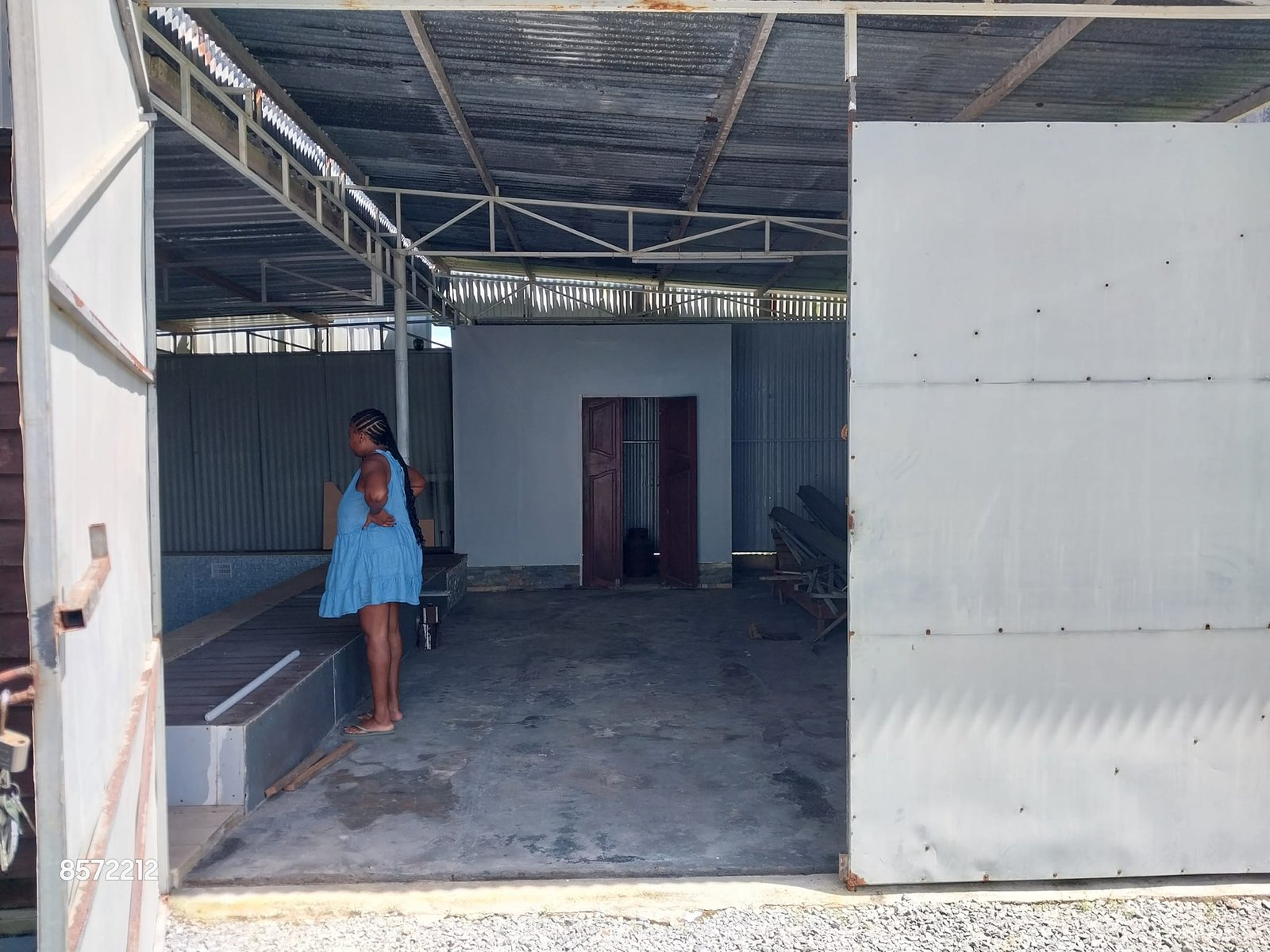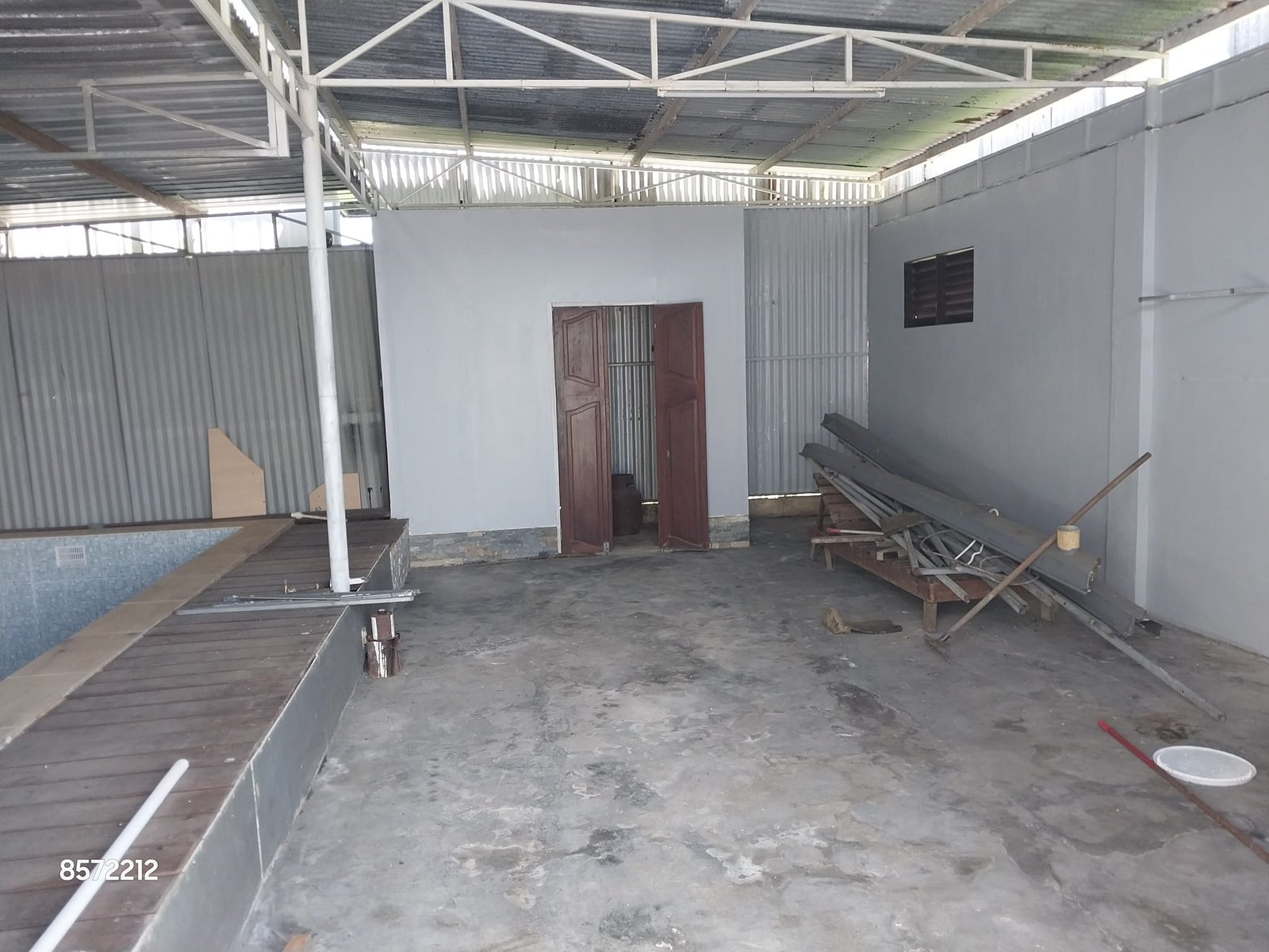 * Een achter geheel gesloten gebouw met mooie schuif deur voor garage en een Prachtig Zwembad.