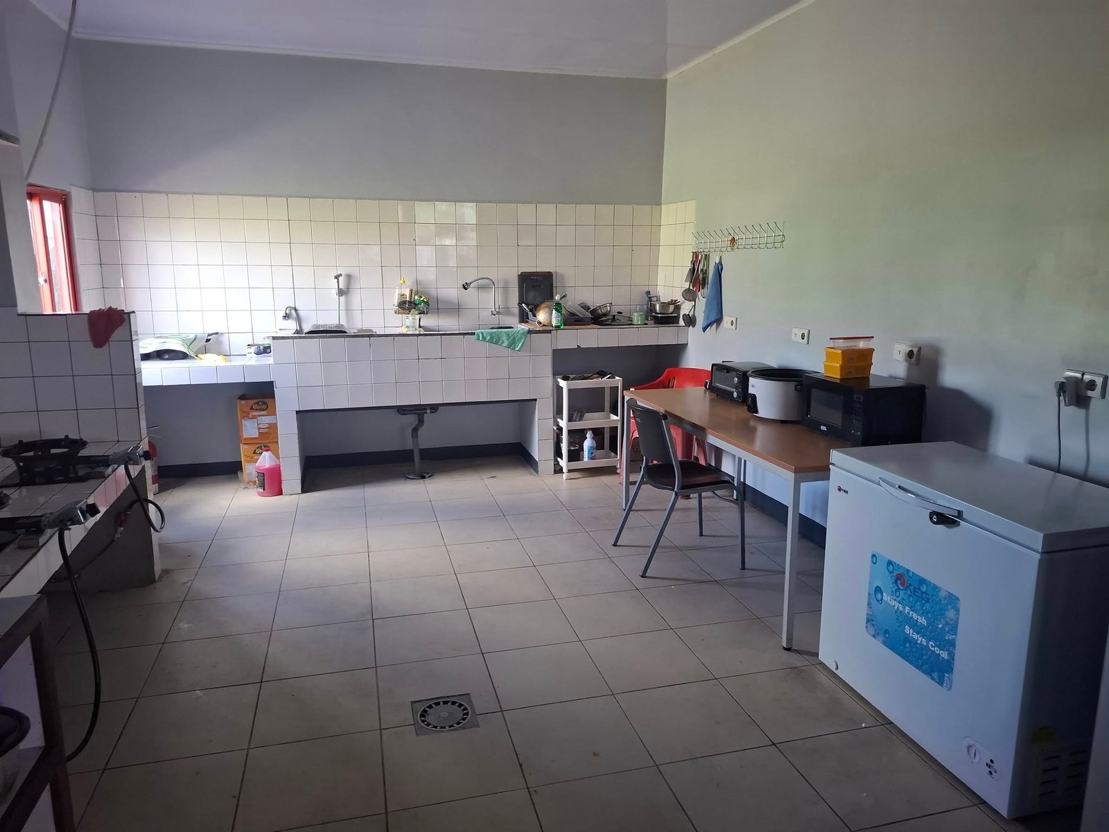 • ACHTER STAAT ER EEN EEN COMPLETE KEUKEN MET ALLES WAT ER NODIG IS.